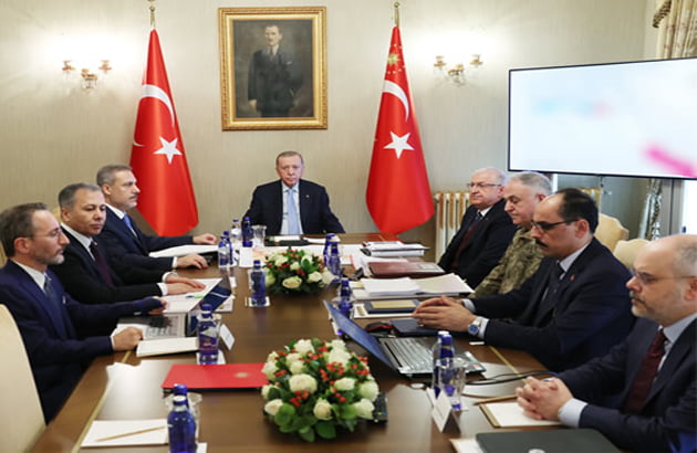 Cumhurbaşkanı Erdoğan başkanlığındaki toplantıya; Dışişleri Bakanı Hakan Fidan, İçişleri Bakanı Ali Yerlikaya, İletişim Başkanı Fahrettin Altun, Milli Savunma Bakanı Yaşar Güler, Genelkurmay Başkanı Org. Metin Gürak, MİT Başkanı İbrahim Kalın ve Cumhurbaşkanı Dış Politika ve Güvenlik Başdanışmanı Akif Çağatay Kılıç katıldı